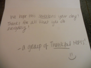 A group of "thankful mothers" dropped off some treats to sweeten the day for the staff at the Cavalier School.